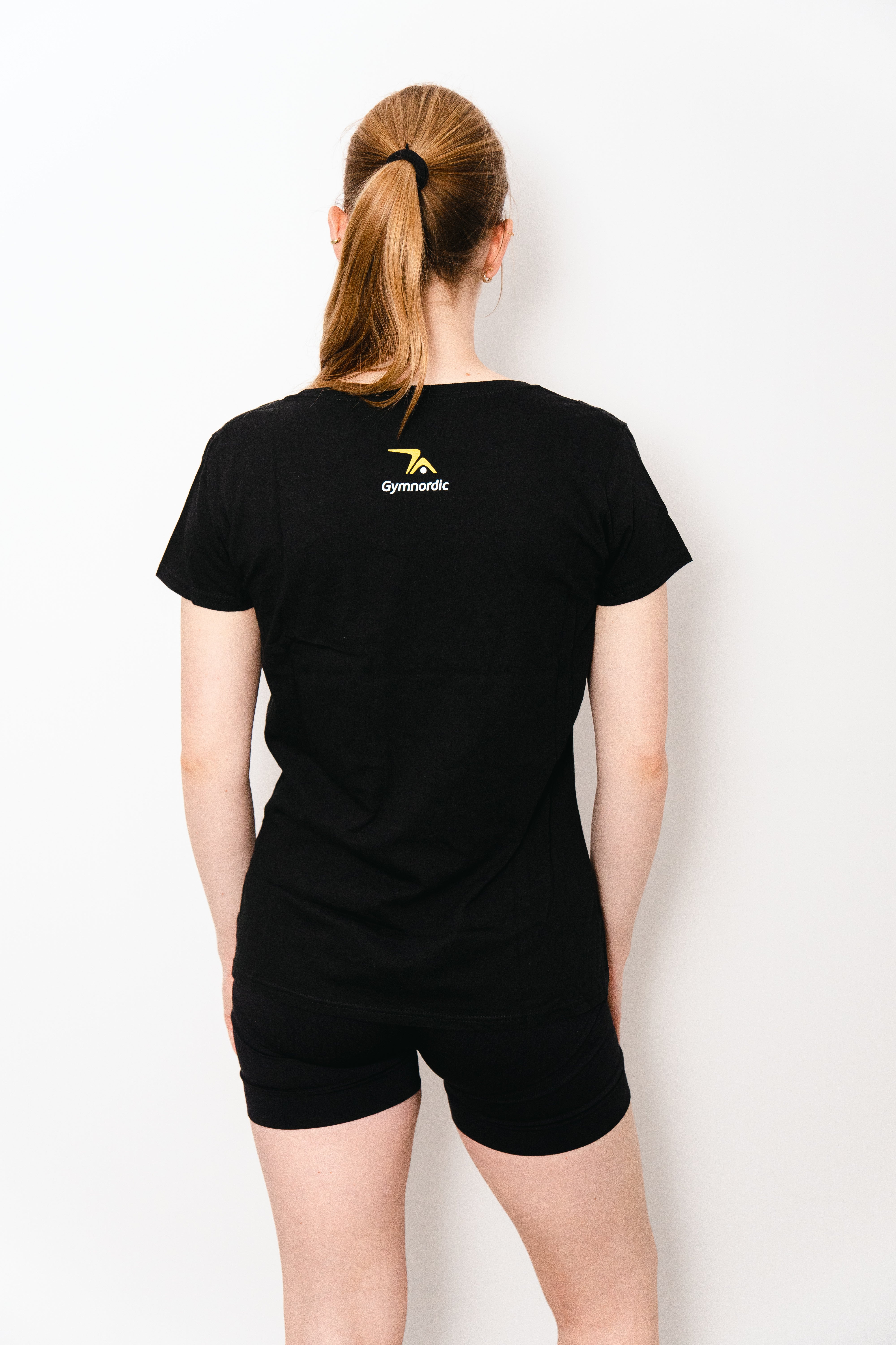 Tył koszulki zdobi minimalistyczne logo Gymnordic, dodając jej elegancji i podkreślając Twoją przynależność do aktywnej społeczności Gymnordic.