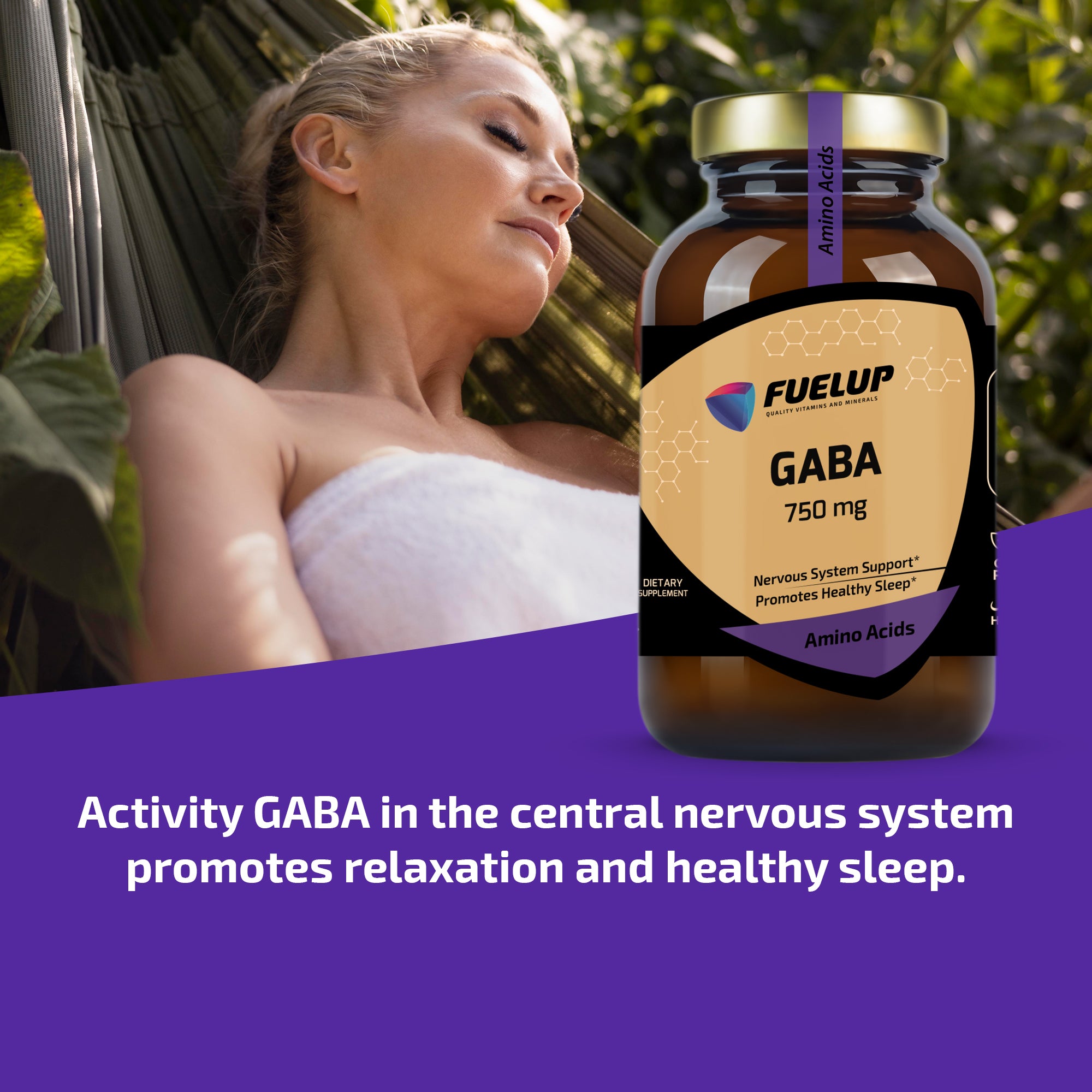FuelUp GABA (kwas gamma-aminomasłowy) działa jako kluczowy neuroprzekaźnik, wspierając przekazywanie sygnałów w mózgu oraz przyczyniając się do uczucia spokoju i równowagi psychicznej. Wspomaga relaksację i naturalny sen, dlatego jest idealny dla osób doświadczających stresu, problemów ze snem lub nadmiernego napięcia psychicznego.