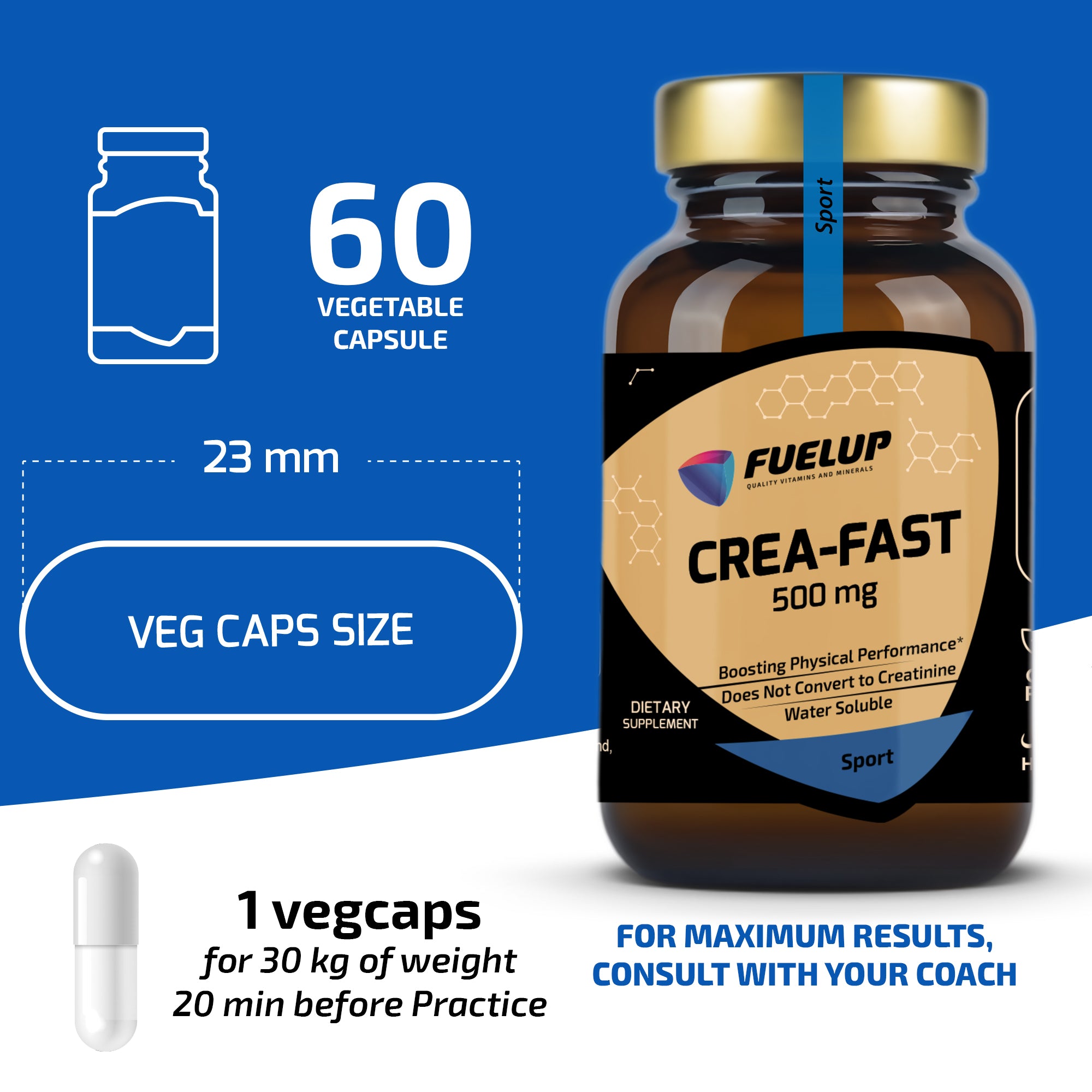 FuelUp CREA-FAST zawiera kreatynę HCL – znaną jako „szybka kreatyna” – która błyskawicznie rozpuszcza się w wodzie i szybko wchłania się do krwiobiegu. Nie przekształca się w kreatyninę i nie obciąża nerek, co czyni ją idealnym wyborem do maksymalizacji efektów treningu bez skutków ubocznych.