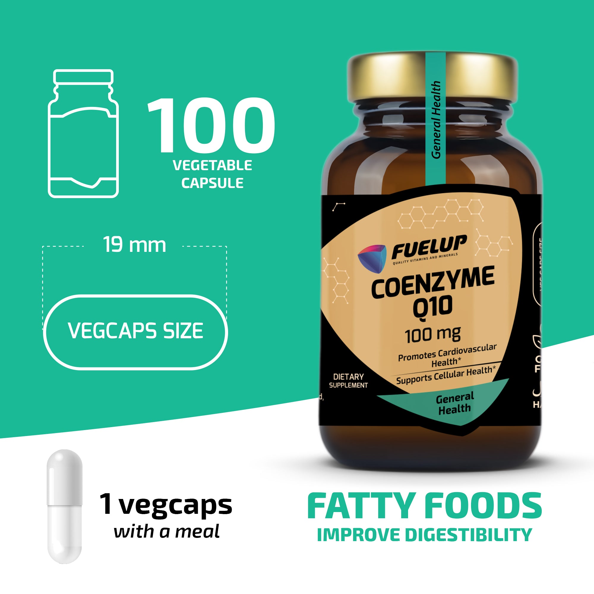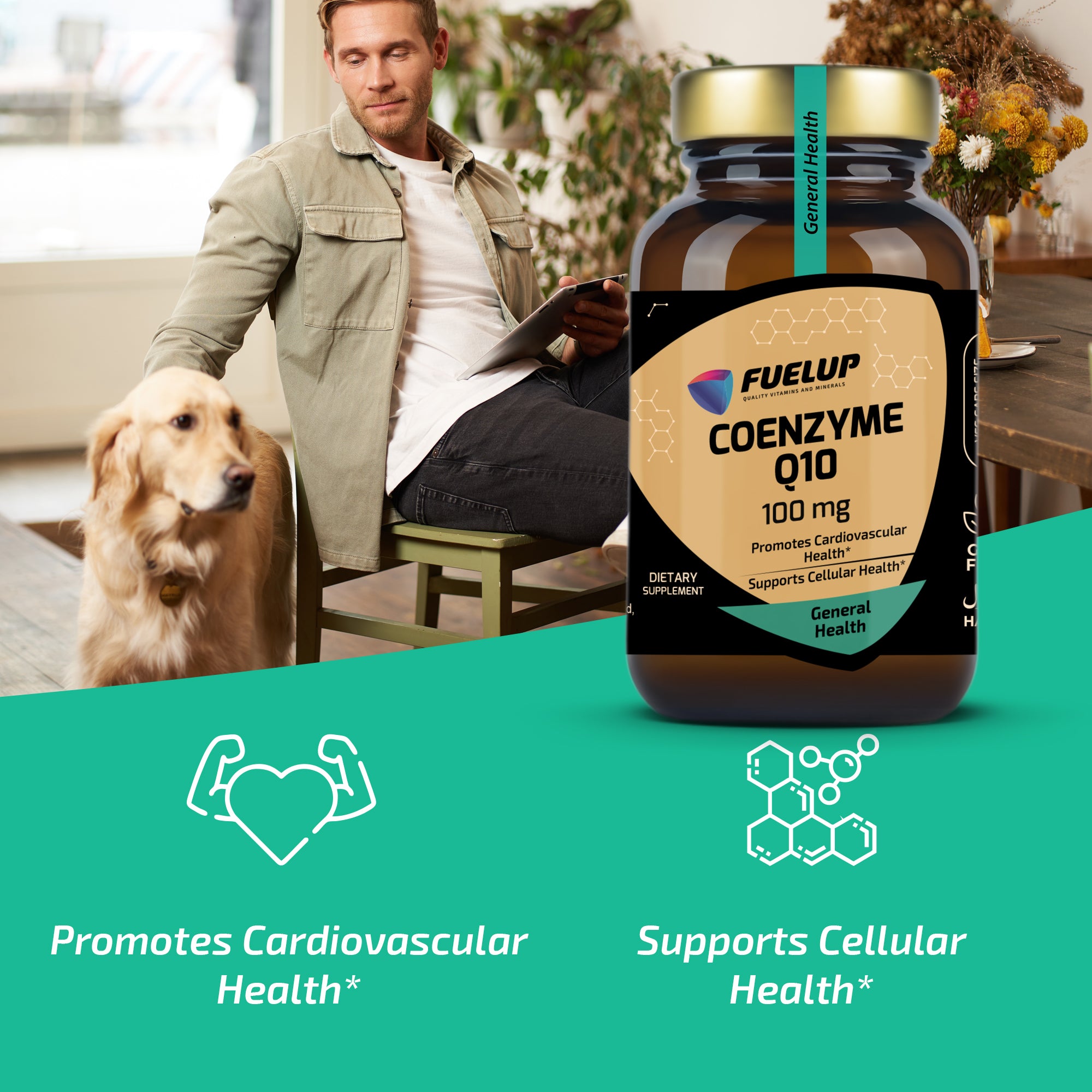 FuelUp Koenzym Q10 (ubichinon) to silny przeciwutleniacz, który wspiera produkcję energii komórkowej (ATP) oraz prawidłowe funkcjonowanie serca. Chroni komórki przed stresem oksydacyjnym i wspomaga energię oraz dobre samopoczucie – idealny dla osób aktywnych i dbających o zdrowy styl życia.