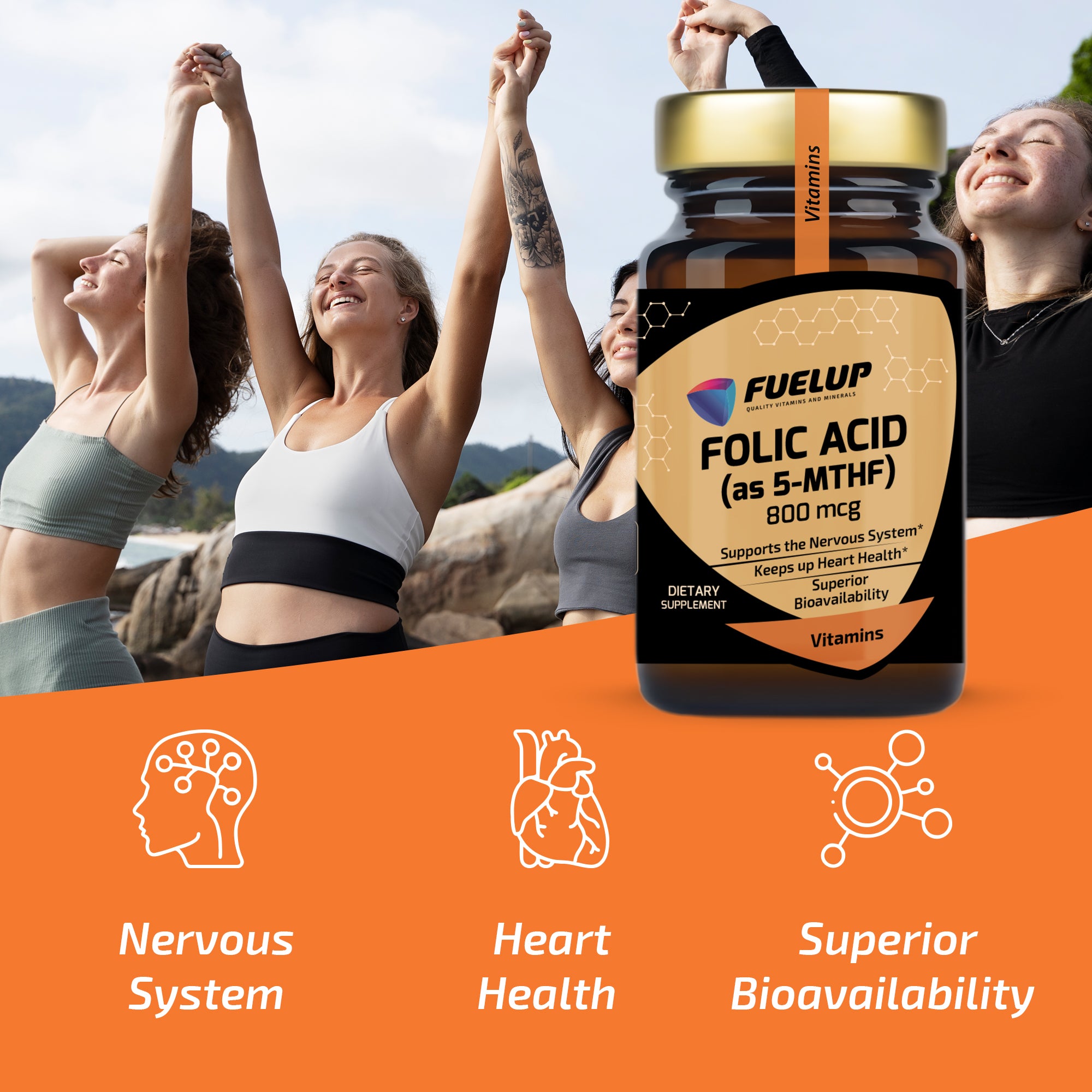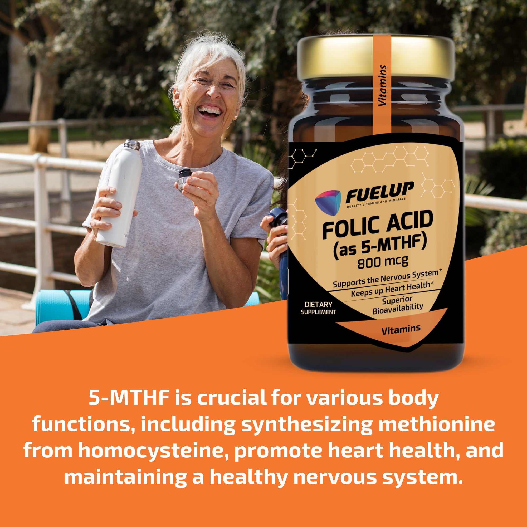 FuelUp Kwas foliowy zawiera aktywną formę folianu (5-MTHF), która jest skutecznie przyswajana przez organizm bez potrzeby konwersji. Ten rozpuszczalny w wodzie witamin z grupy B odgrywa kluczową rolę w syntezie metioniny, wspiera serce i układ nerwowy. Idealny do codziennego stosowania dla ogólnego zdrowia.