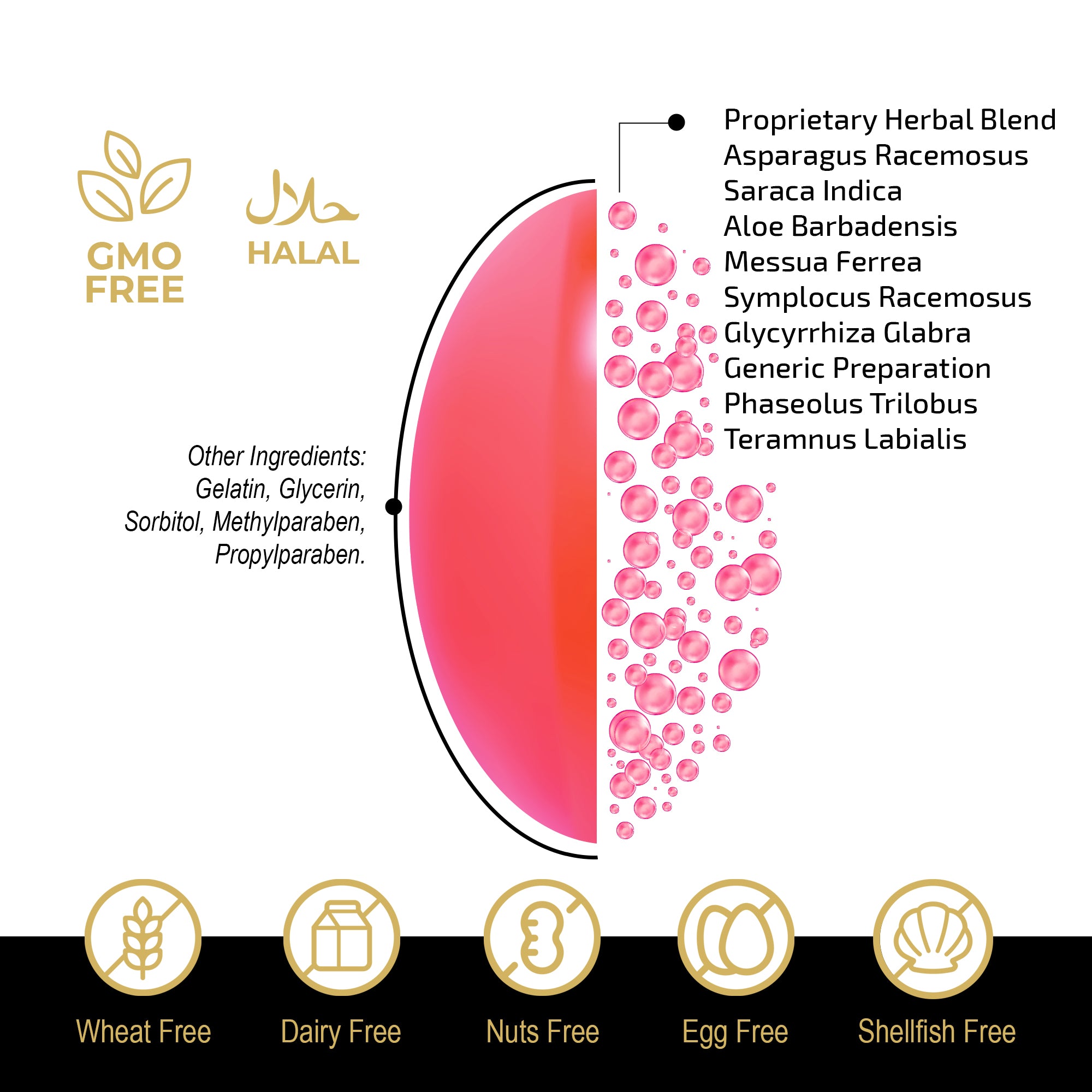 ✔ Zawiera naturalne ekstrakty, takie jak Shatavari, Ashoka i Aloes Vera
