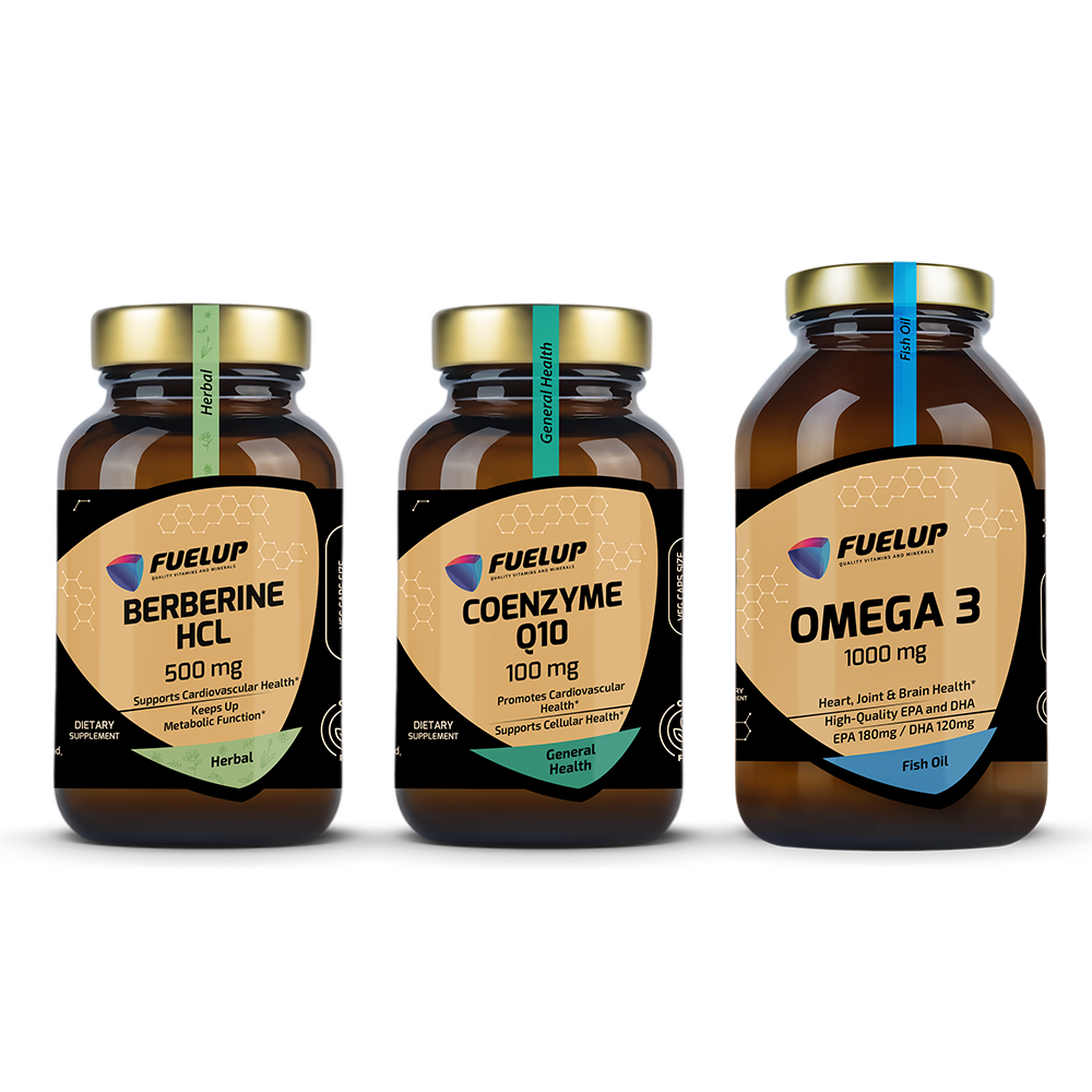 Fuel-Up Anti-Aging to zestaw trzech starannie dobranych suplementów: Omega-3, Koenzym Q10 i Berberyny HCL. Ich synergiczne działanie wspiera zdrowe starzenie się organizmu, poprawia funkcje serca i mózgu oraz pomaga w utrzymaniu prawidłowego poziomu cukru.